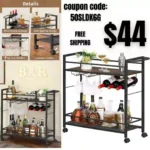 Home » Blog » Bar Cart,Home Bar Serving Cart with Large Storage Space, 2 Tier Rolling Beverage Cart with Wheels, Modern Wine Cart with Wine Rack and Glass Holder for Kitchen