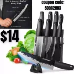 Kitchen Knife Set with Block, 11PCS Chef Knife Set with Sharpener